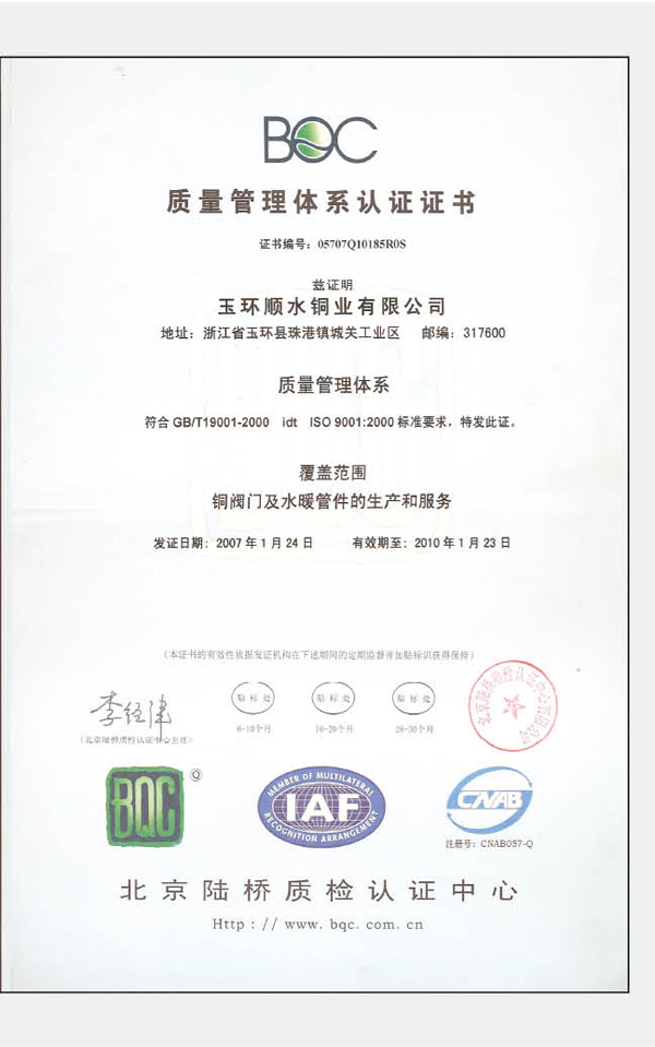 Quality management system certification